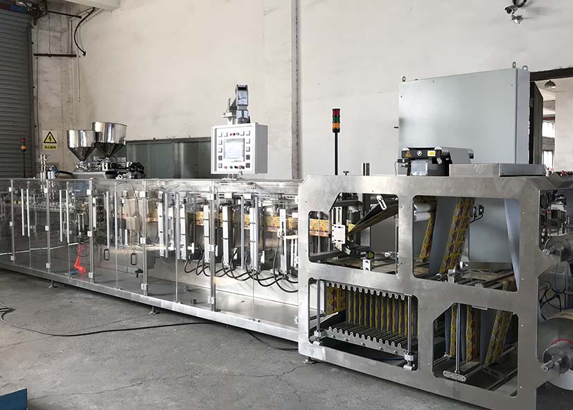 1) easy and fast adjustment of change over, the machine has strength extensibility, could fill two or even more products into one bag by added filling device .